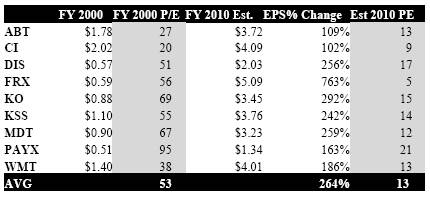 In order to make the decade long valuation contraction more apparent, I wanted include a random group of stocks (mixture of healthcare, media, retailer, consumer non-discretionary, and financial services) to liven up my argument: