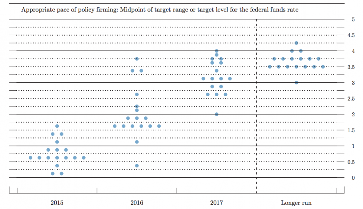 Outside the scandalous “patient” semantics was the heated debate over the Fed’s “Dot Plot,” which is just a 3rd grader’s version of showing the Fed members’ Federal Funds rate forecasts. While to a layman the chart below may look like an elementary school dot-to-dot worksheet, in reality it is a good synopsis of interest rate expectations. Part of the reason stocks reacted so positively to the Fed’s statement is because the “Dot Plot” median interest rate expectations of 0.625% came down 0.50% for 2015, and by more than 0.60% for 2016 to 1.875%. This just hammers home the idea that there are currently no dark clouds looming on the horizon that would indicate aggressive rate hikes are coming.