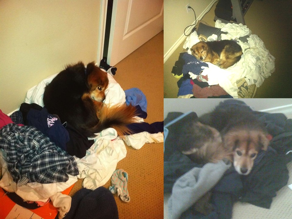 In the sleep department, Corky was willing to sleep almost anywhere, but her favorite spot was a fresh pile of warm unfolded clothes (below).
