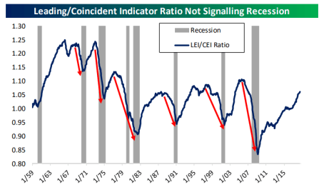 Despite all the hand wringing going on over political headlines, the fact remains the economic tailwinds have “trumped” any political concerns. After a strong Q2 GDP reading of +4.2%, according to numerous economists, Q3 is tracking for another healthy +3% gain. As the Leading & Coincident Indicator chart shows below, there currently is no sign of an imminent recession.
