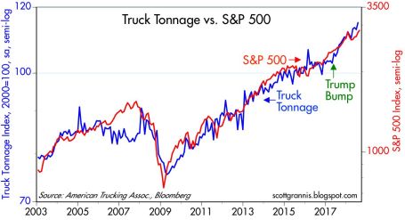 The real economy, as measured by the shipment of goods, is trucking along as well (see the truck tonnage chart below).