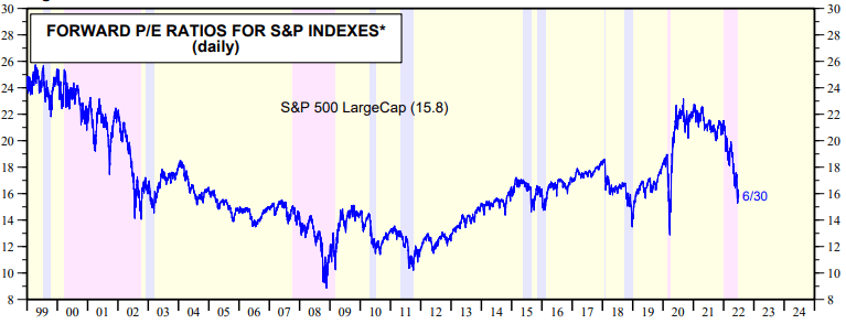 - PRICES: Valuations have come down significantly – Price/Earnings ratio of 15.9 (i.e., stock prices are on sale).