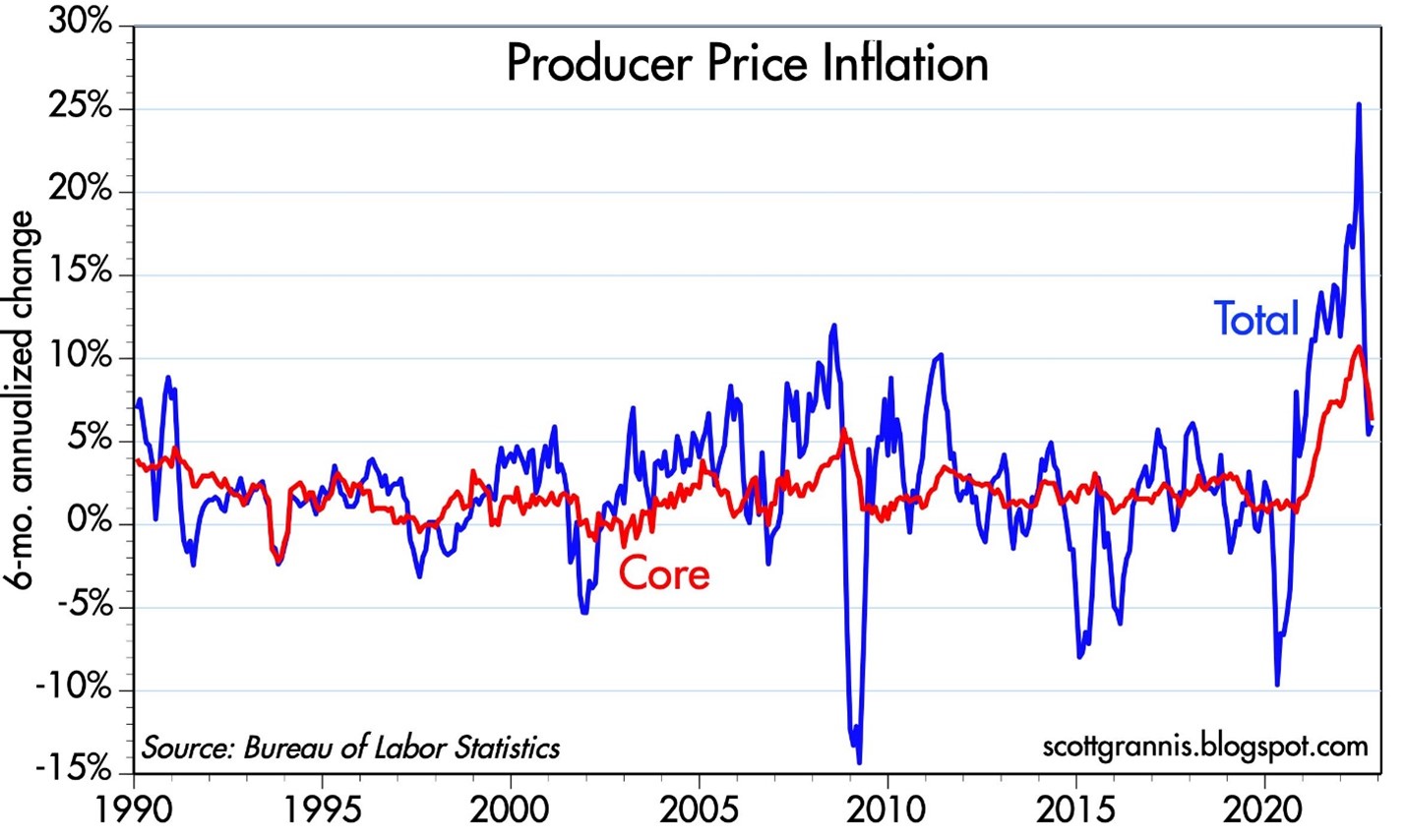 You can clearly see the improving inflation picture breaking through in the Producer Price Index (PPI – see chart below), a measure of wholesale inflation that has come down dramatically in recent months.