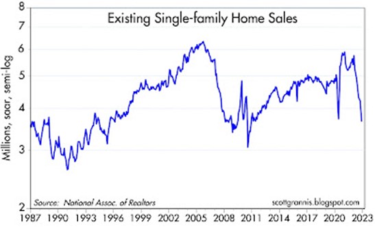 Last year was challenging, however, not all is lost. The Federal Reserve, inflation, interest rates, Ukraine, and cryptocurrency volatility (e.g., Bitcoin down -64% in 2022) dominated headlines this year, but many of these headwinds could abate or reverse in 2023. For example, there are numerous indicators pointing to peaking and/or declining inflation, which, if true, could create a tailwind for investors this year. Bolstering this argument are the current weakening trends we are witnessing in the housing market, which should ripple through the economy to cool inflation (see chart below).