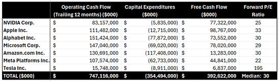 Conveniently (and importantly), the Mag 7’s roughly $747 billion in annual cash flow (see table below) is a good proxy for their profit contribution to the $2 trillion in S&P profits.