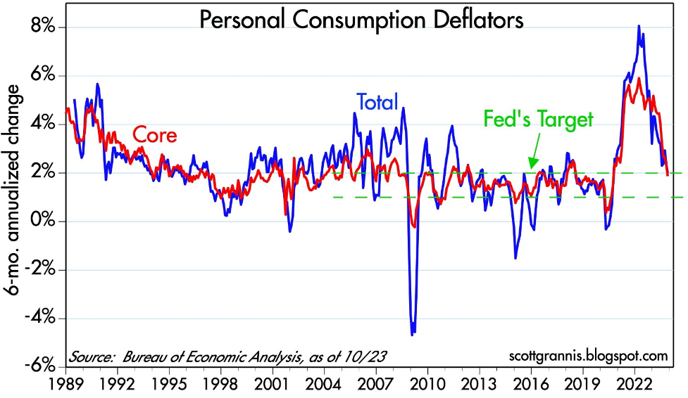 What has investors so jazzed up in recent months? For starters, inflation has been on a steady decline for many months. With China’s stagnating economy, it has helped our inflationary cause by exporting deflationary goods to our country. As you can see from the Personal Consumption Deflator chart below, this broad inflation measure has declined to the Federal Reserve’s 2% target level. Jerome Powell, the Federal Reserve Chairman has been paying attention to these statistics, as evidenced by the central bank’s forecast at the Fed’s recent policy meeting last month on December 13th for three interest rate cuts in 2024. This so-called “Powell Pivot” is a reversal in tone by the Fed, which had been on a relentless rampage of interest rate hikes, over the last two years.