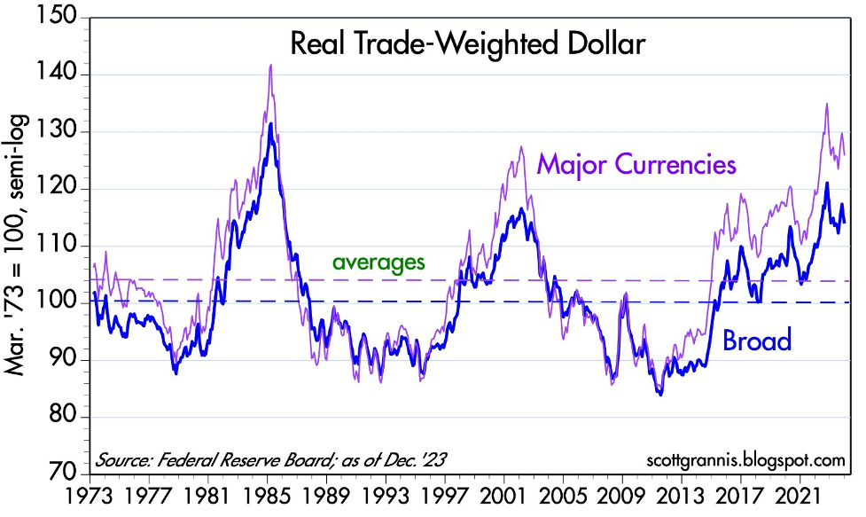 For years, market critics and pessimists have been screaming doom-and-gloom as it relates to the United States. The story goes, the U.S. is falling apart, government spending and debt levels are out of control, politicians are corrupt, and we’re going into recession, thanks in part to higher interest rates and inflation. Well, if that’s the case, then why has the value of the U.S. dollar increased over the last 10 years (see chart below)? And why is the stock market at all-time record-highs?