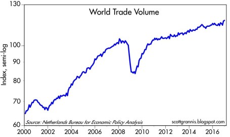 Whether you agree or disagree with the new political administration’s politics, the economy was already on the comeback trail before the November 2016 elections, and the momentum appears to be continuing. Not only has the pace of job growth been fairly consistent (+235,000 new jobs in February, 4.7% unemployment rate), but industrial production has been picking up globally, along with a key global trade index that accelerated to 4-5% growth in the back half of 2016 (see chart below).