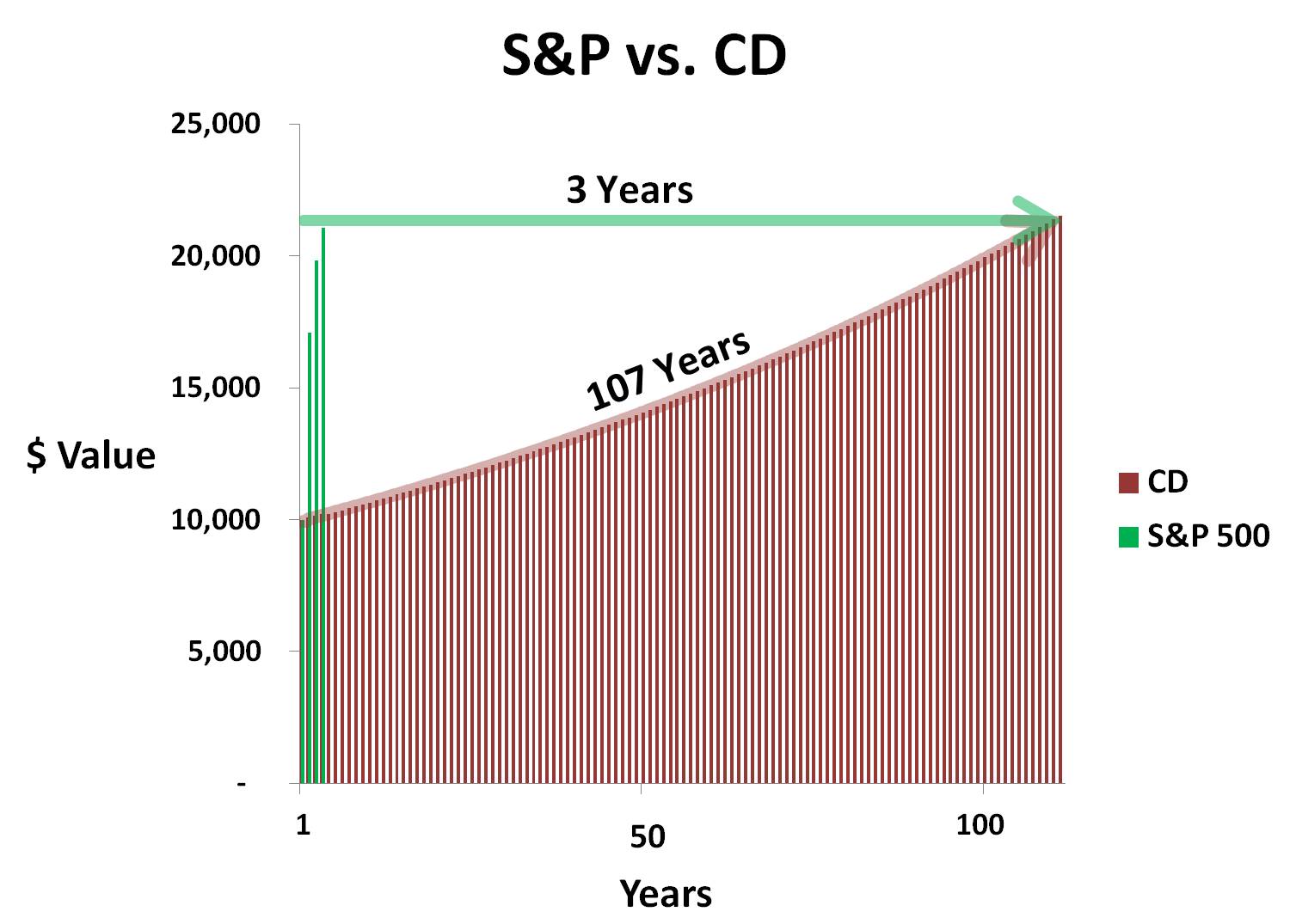 Earning next to nothing by stuffing your money under the mattress (0.7% average CD rate – Bankrate.com) isn’t going to make many financial dreams a reality. The truth of the matter is that due to inflation (running +2% to +3% per year), blanket holders are losing about -2% per year in the true value of their savings.