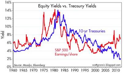 Not only are equity earnings yields beating Treasury yields, but so are dividend yields. It has been a generation, or more than 50 years, since the last time stock dividends were yielding more than 10-year Treasuries (see chart below). If you invested in stocks back when dividend yields outpaced bond yields, and held onto your shares, you did pretty well in stocks (the Dow Jones Industrial index traded around 600 in 1960 and over 13,000 today).