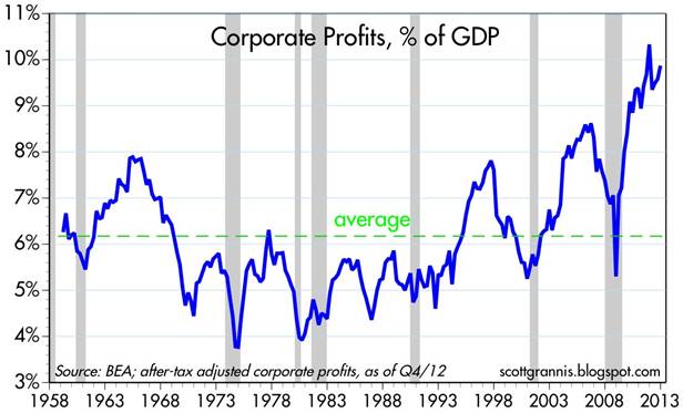 Obviously the massive underperformance of CDs cherry picks the time-period a bit, given the superb performance of stocks from 2009 – 2012 year-to-date. Over 1999-2012 stock performance hasn’t been as spectacular, but what we do know is that despite the lackluster performance of stocks over the last 12 years, corporate profits have about doubled in a similar timeframe, making equity prices that much more attractive relative to 1999.