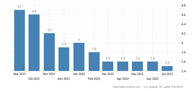 And while the Fed is doing its darnedest to bring a halt to gut-wrenching inflation, the job market remains on fire (see chart below). The unemployment rate registered in at a near a generational-low of 3.5% last month, but we will receive a fresh, new figure this week to see if this trend continues.