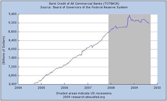 As larger companies are freely tapping the capital markets for capital, it’s becoming more and more evident that small businesses are having tougher and tougher times accessing credit, thanks in large part to banks hunkering down and reducing lending. Reference the flattening commercial bank credit curve chart provided by the Federal Reserve System: