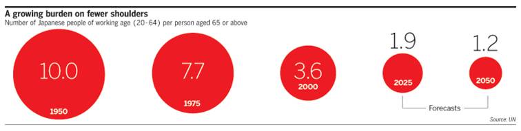 Source: UN via Financial Times. Declining Japanese population is putting a growing burden on fewer shoulders.