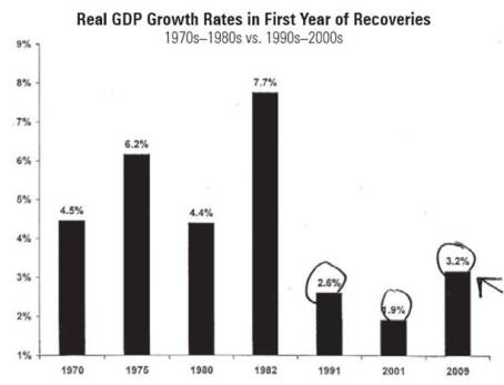 As you can see from Paulsen’s table below, our current recovery is not as brisk as the recoveries in the pre-1983 era, but he chalks up this trend to subpar growth in the United States’ labor force.