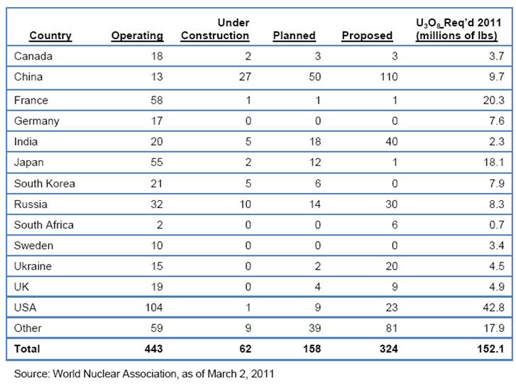 As a result of the damaged Fukushima reactors, coupled with various governmental announcements around the globe, Uranium prices have dropped a whopping -30% within a month – plunging from about $70 per pound to around $50 per pound today.