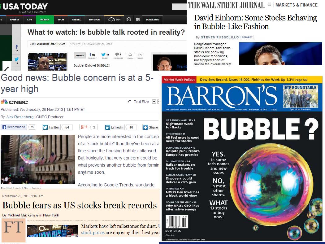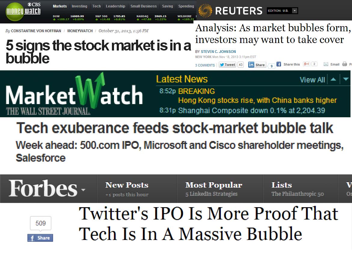 All the recent bubble talk scattered over all the media outlets only bolsters my fear case more. If we actually were in a stock bubble, you wouldn’t be reading headlines like these: