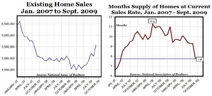 The economy is on the mend, but we are obviously not out of the woods. Leverage and asset inflation through the housing bubble were major causes of the financial crisis of 2008-09. Now some of the major indicators are turning upwards with GDP expected to rise around +3% in Q3 this year and we are seeing housing units up, housing prices up, and housing inventories down (charts below). Although some of these numbers may create some warm and fuzzy sensations, abnormally high unemployment rates, massive budget deficits, and stuttering consumer confidence make this rebound feel more like kissing your sister.