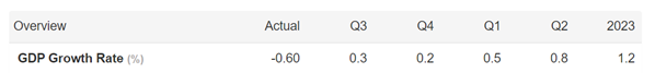 There is a lot of uncertainty out in the world currently (i.e., inflation, the Fed, Russia-Ukraine, strong dollar, elections, recession fears, etc.), but that is always the case. There is never a period when there is nothing to be concerned about. With the S&P 500 down more than -25% from its peak (and the NASDAQ down approximately -35%), now is not the right time to panic. Knee-jerk emotional decisions during stressful times are very rarely the right response. With these kind of drops, a mild-to-moderate recession is already baked into the cake, even though the economy is expected to grow for the next four quarters and for all of 2023 (see GDP forecasts below). Stated differently, it’s quite possible that even if the economy deteriorates into a recession, stock prices could rebound smartly higher because any potential future bad news has already been anticipated in the current price drops.