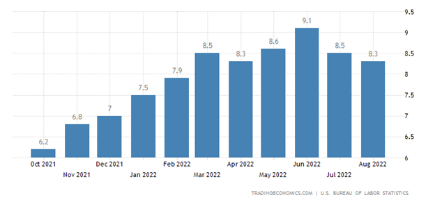 When interest rates increase at the fastest pace in 40 years, pain is felt across almost all asset classes. It’s not just U.S. stocks, which declined -9.3% last month (S&P 500), but it’s also housing -8.5% (XHB), real estate investment trusts -13.8% (VNQ), bonds -4.4% (BND), Bitcoin -3.1%, European stocks -10.1% (VGK), Chinese stocks -14.4% (FXI), and Agriculture -3.0% (DBA). The +17% increase in the value of the U.S. dollar this year against a basket of foreign currencies is substantially pressuring cross-border business for larger multi-national companies too – Microsoft Corp. (MSFT), for example, blamed U.S. dollar strength as the primary reason to cut earnings several months ago. Like Hurricane Ian, large interest rate increases have caused significant damage across a wide swath of areas.
