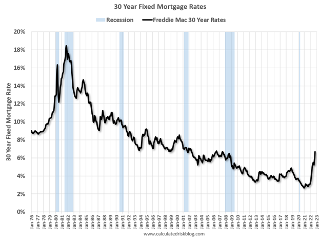 But for those following the communication of Federal Reserve Chairman, Jerome Powell, in recent months, they should not be surprised. Chairman Powell has signaled on numerous occasions, including last month at a key economic conference in Jackson Hole, Wyoming, that the Fed’s war path to curb inflation by increasing interest rates will inflict wide-ranging “pain” on Americans. Some of that pain can be seen in mortgage rates, which have more than doubled in 2022 and last week eclipsed 7.0% (see chart below), the highest level in 20 years.