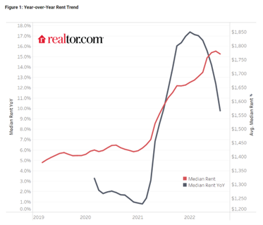 Outside of commodities, investors have seen prices drop in other areas of the economy as well, including housing prices, which recently experienced the fastest monthly price drop in 11 years, and rent prices as well (see chart below).