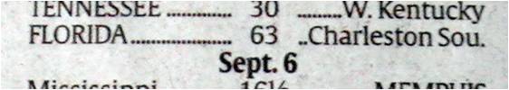 Florida Gators vs. Charleston Southern Buccaneers (September 2009): Without knowing a lot about the powerhouse Southern Buccaneers squad from South Carolina, 99% of respondents, when asked before the game who would win, would unanimously select Florida – a consistently dominant, national franchise, powerhouse program. The question becomes a little trickier when participants are asked, “Will the Florida Gators win by more than 63 points?” Needless to say, although the Buccs kept it close in the first half, and only trailed by 42-3 at halftime, the Gators still managed to squeak by with a 62-3 victory. Worth noting, had you selected Florida, the overwhelming favorite, the 59 point margin of victory would have resulted in a losing wager (see picture below).